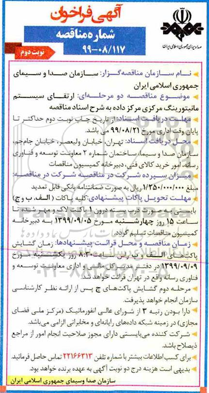- نام سازمان مناقصه گزار: سازمان صدا و سیمای جمهوری اسلامی ایران