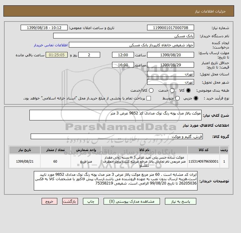 شرح کلی نیاز: موکت پالاز مدل پونه رنگ نوک مدادی کد 9852 عرض 3 متر