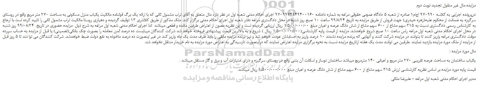 مزایده مال غیر منقول تجدید نوبت دوم