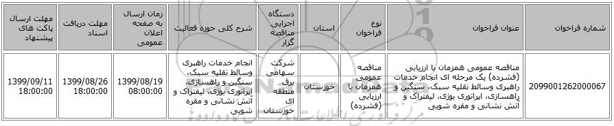 مناقصه، مناقصه عمومی همزمان با ارزیابی (فشرده) یک مرحله ای انجام خدمات راهبری وسائط نقلیه سبک، سنگین و راهسازی، اپراتوری بوژی، لیفتراک و آتش نشانی و مقره شویی, مناقصه عمومی همزمان با ارزیابی (فشرده) یک مرحله ای انجام خدمات راهبری وسائط نقلیه سبک، سنگین و راهسازی، اپراتوری بوژی، لیفتراک و آتش نشانی و مقره شویی