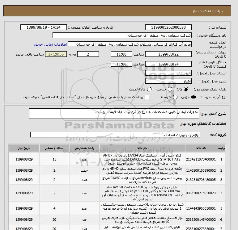نام دستگاه خریدار:شرکت سهامی برق منطقه ای خوزستان