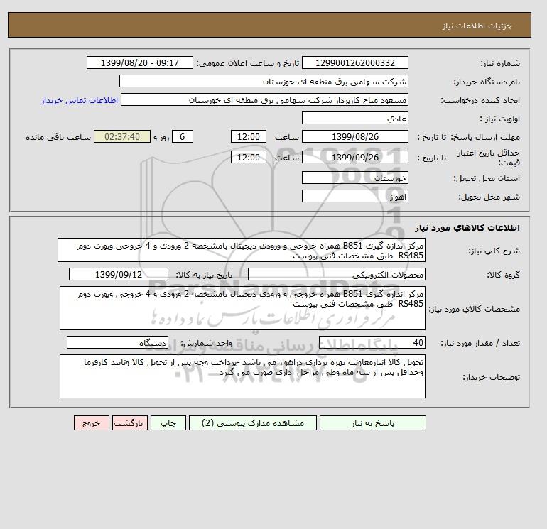 نام دستگاه خریدار:شرکت سهامی برق منطقه ای خوزستان