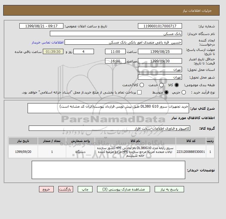 شرح کلی نیاز: خرید تجهیزات سرور DL380 G10 طبق پیش نویس قرارداد پیوست(ایران کد مشابه است)