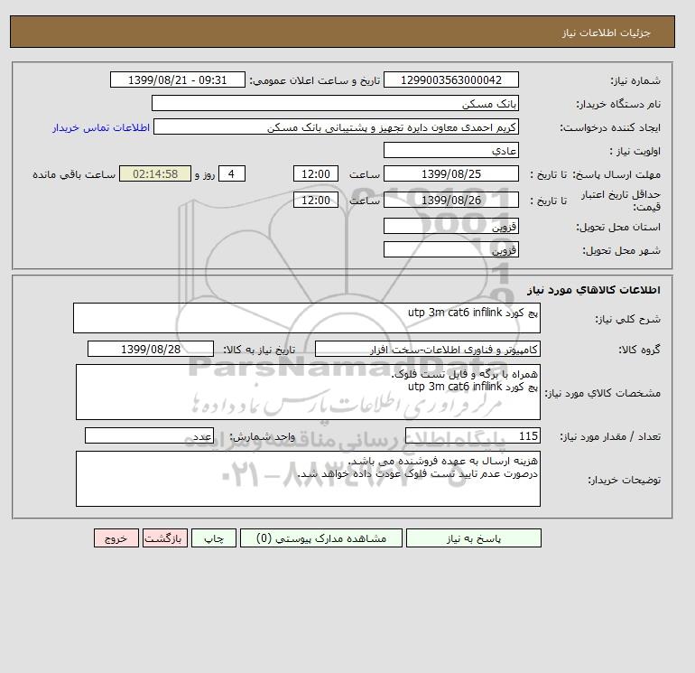 شرح کلی نیاز: پچ کورد utp 3m cat6 infilink