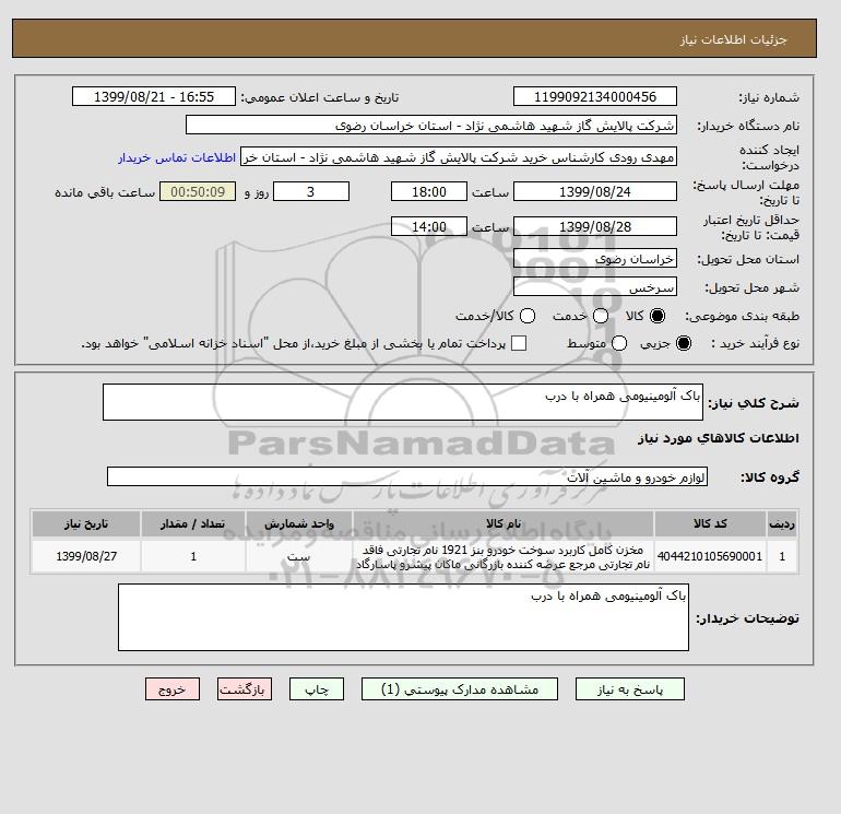 نام دستگاه خریدار:شرکت پالایش گاز شهید هاشمی نژاد - استان خراسان رضوی