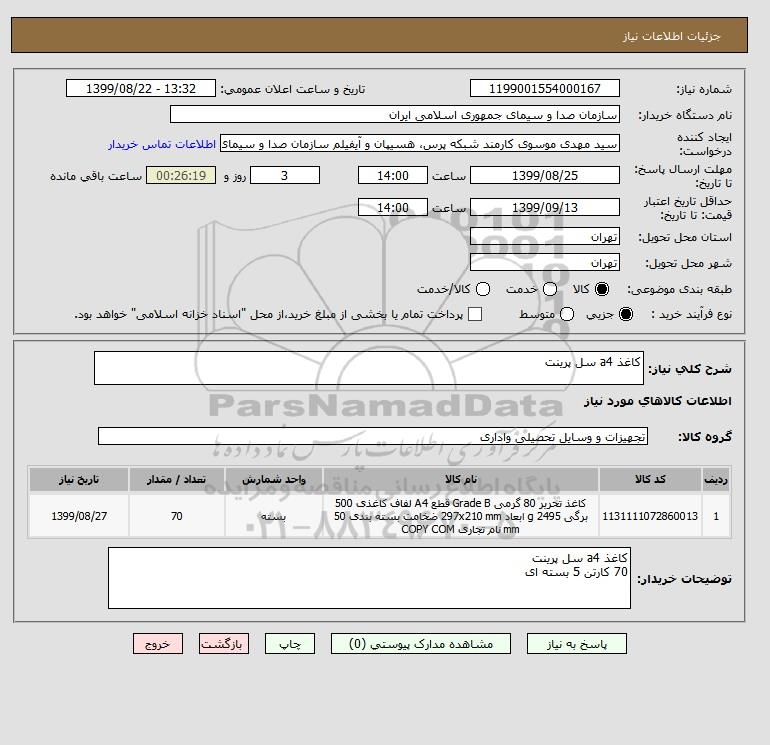 شرح کلی نیاز: کاغذ a4 سل پرینت