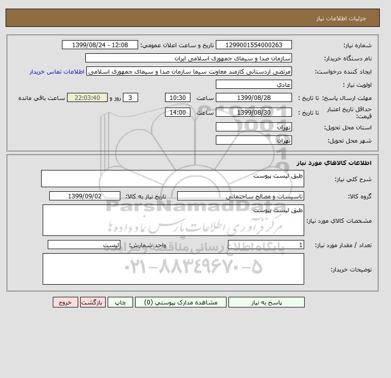 نام دستگاه خریدار:سازمان صدا و سیمای جمهوری اسلامی ایران