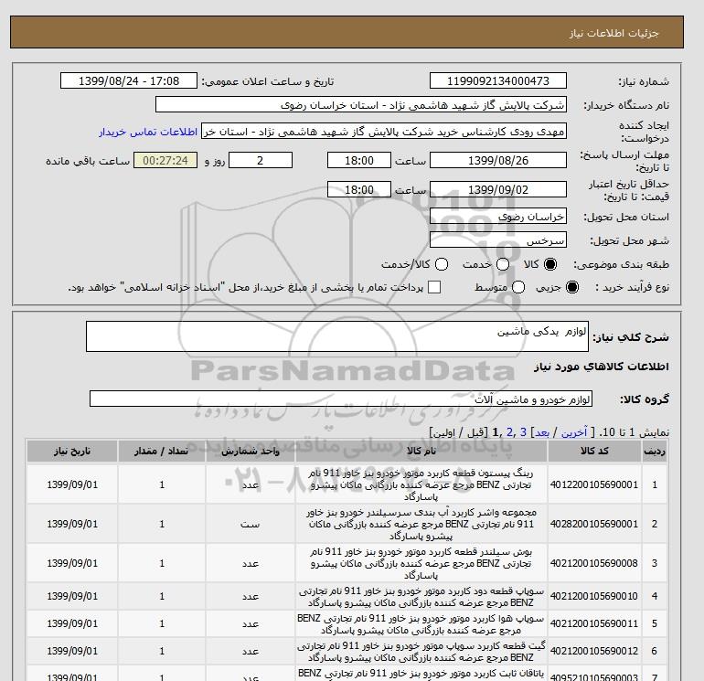نام دستگاه خریدار:شرکت پالایش گاز شهید هاشمی نژاد - استان خراسان رضوی