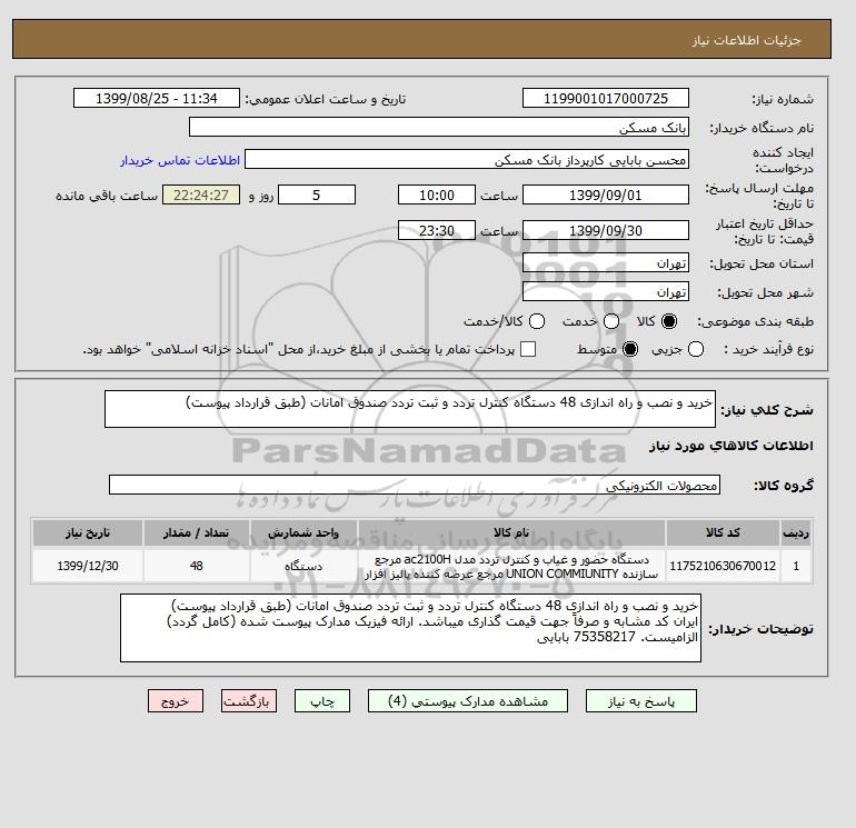 شرح کلی نیاز: خرید و نصب و راه اندازی 48 دستگاه کنترل تردد و ثبت تردد صندوق امانات (طبق قرارداد پیوست)