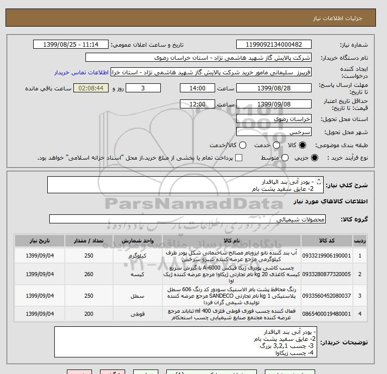 استعلام - پودر آنی بند الیافدار 2- عایق سفید پشت بام 3- چسب 3,2,1 بزرگ 4- چسب زیکاوا, استعلام - پودر آنی بند الیافدار 2- عایق سفید پشت بام 3- چسب 3,2,1 بزرگ 4- چسب زیکاوا