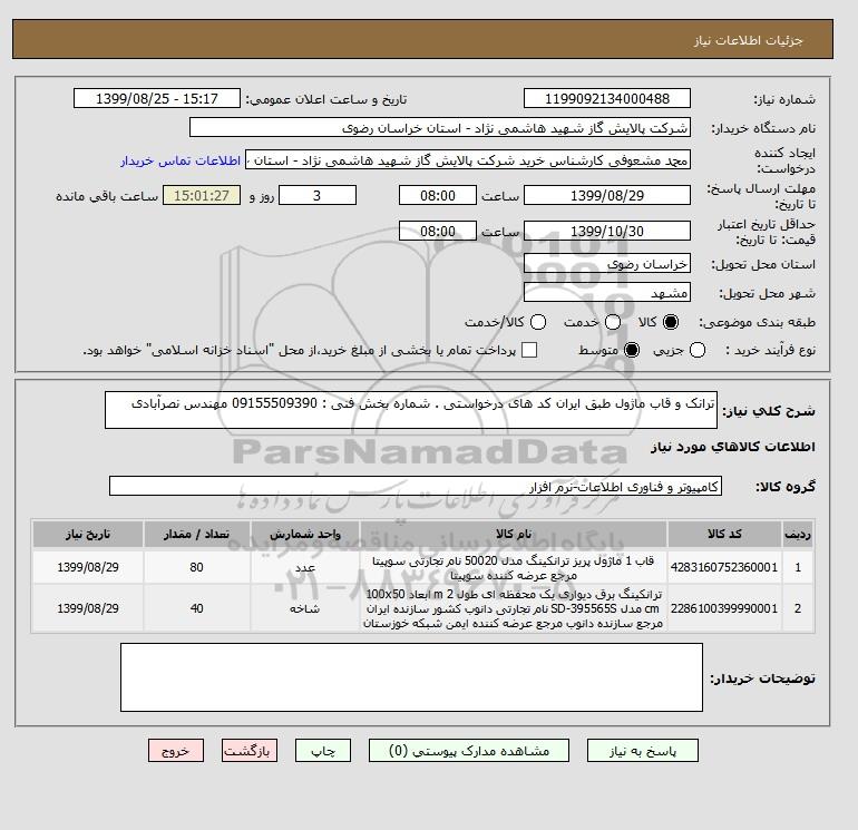 نام دستگاه خریدار:شرکت پالایش گاز شهید هاشمی نژاد - استان خراسان رضوی