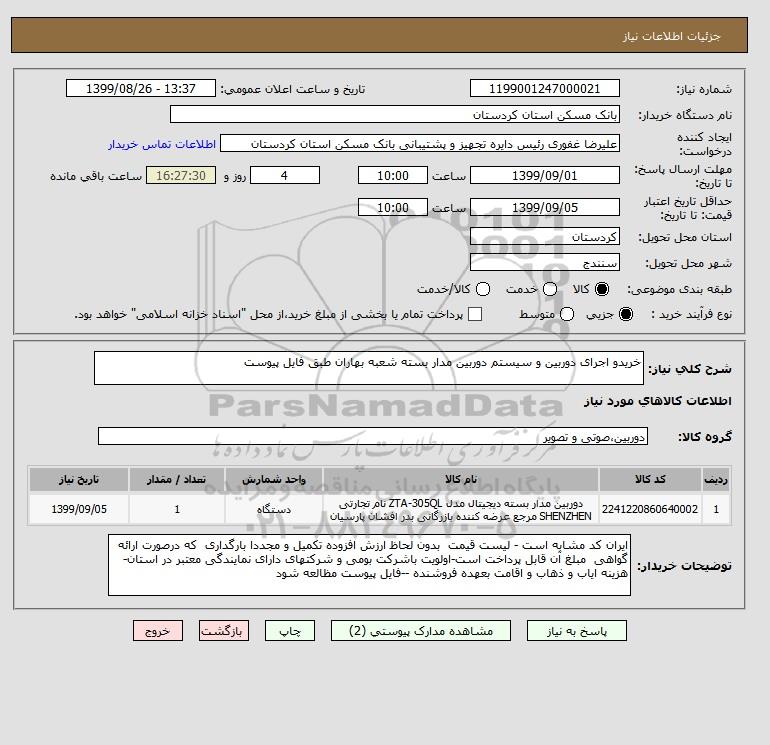 نام دستگاه خریدار:بانک مسکن استان کردستان