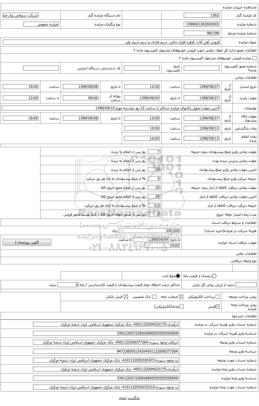 | شناسه واریز هزینه شرکت در مزایده | 339122057228500895555555555909 |