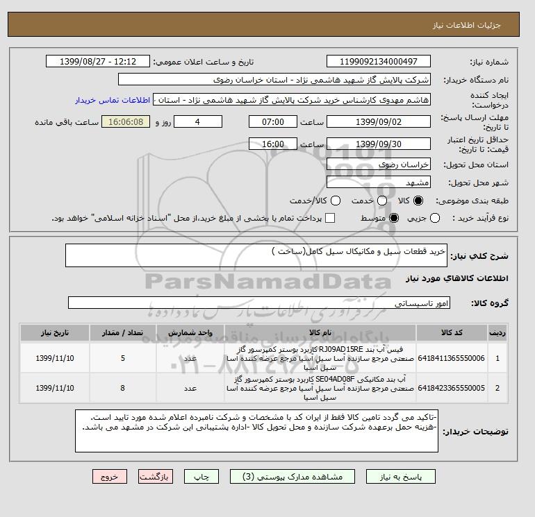 شرح کلی نیاز: خرید قطعات سیل و مکانیکال سیل کامل(ساخت )