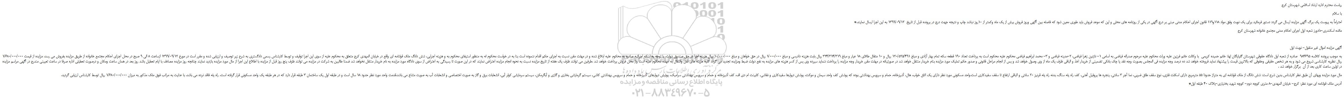 احتراماً به پیوست یک برگ آگهی مزایده ارسال می گردد دستور فرمائید برای یک نوبت وفق مواد 118و119 قانون اجرای احکام مدنی مبنی بر درج آگهی در یکی از روزنامه های محلی و این که موعد فروش باید طوری معین شود که فاصله بین آگهی وروز فروش بیش از یک ماه وکمتر از 10روز نباشد چاپ و نتیجه جهت درج در پرونده قبل از تاریخ 1399/09/12 به این اجرا ارسال نمایند.*