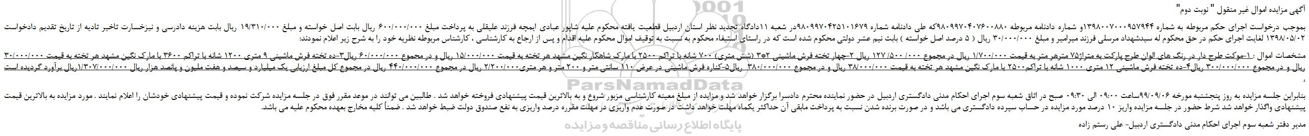 "آگهی مزایده اموال غیر منقول " نوبت دوم