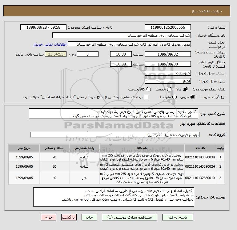 نام دستگاه خریدار:شرکت سهامی برق منطقه ای خوزستان