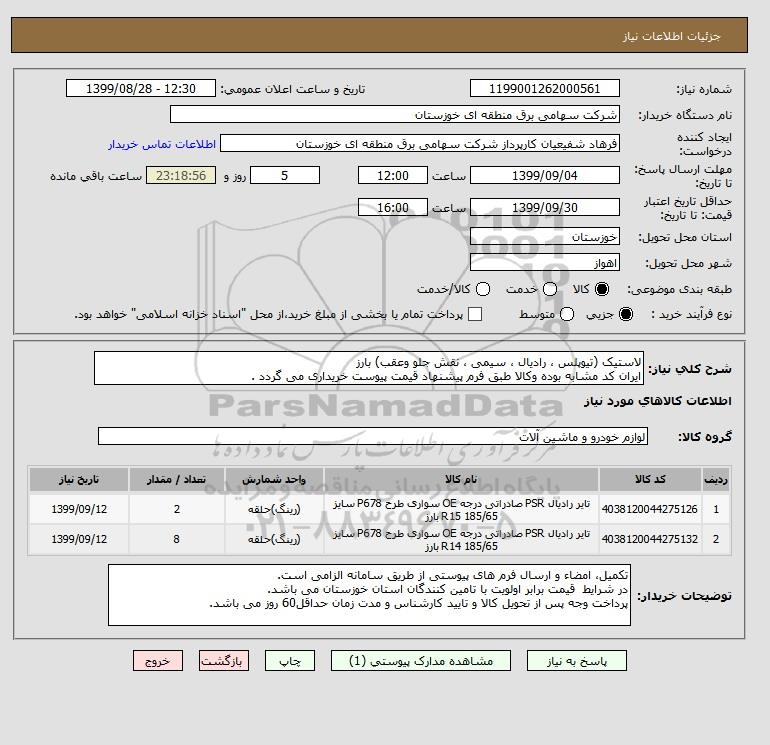 نام دستگاه خریدار:شرکت سهامی برق منطقه ای خوزستان