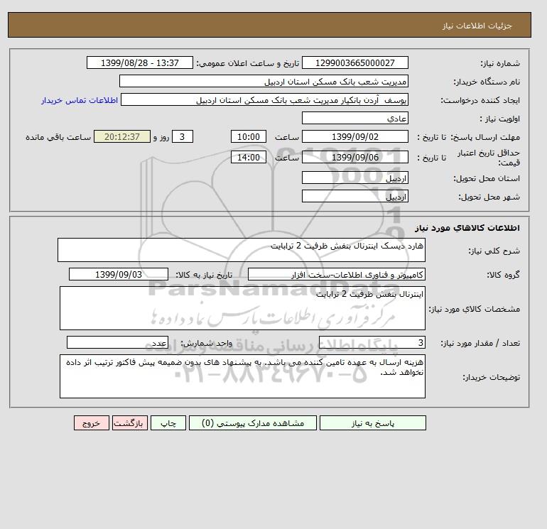 نام دستگاه خریدار:مدیریت شعب بانک مسکن استان اردبیل