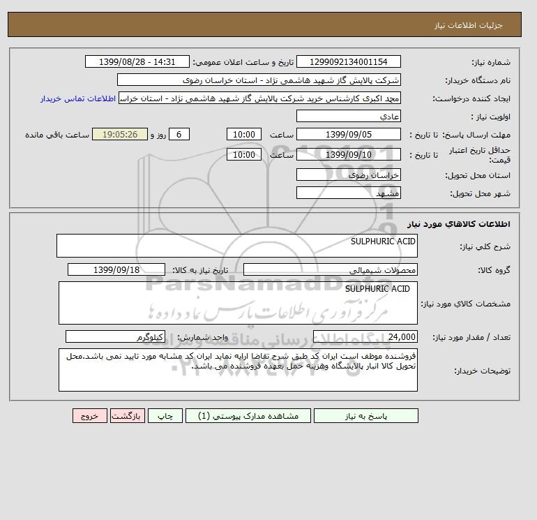 شرح کلی نیاز: SULPHURIC ACID