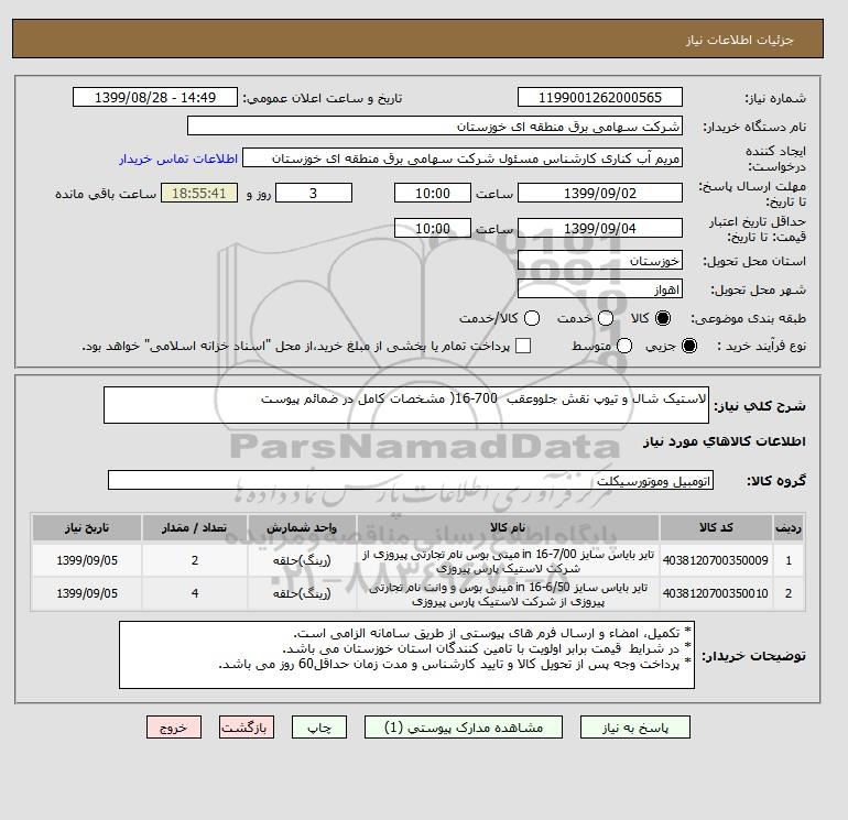 استعلام لاستیک شال و تیوپ نقش جلووعقب 700-16( مشخصات کامل در ضمائم پیوست, استعلام لاستیک شال و تیوپ نقش جلووعقب 700-16( مشخصات کامل در ضمائم پیوست