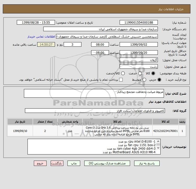 شرح کلی نیاز: مربوط صیانت وحفاظت مجتمع زیباکنار