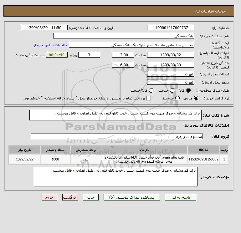 استعلام ایران کد مشابه و صرفا جهت درج قیمت است . خرید تابلو قلم زنی طبق تصاویر و فایل پیوست . , استعلام ایران کد مشابه و صرفا جهت درج قیمت است . خرید تابلو قلم زنی طبق تصاویر و فایل پیوست .