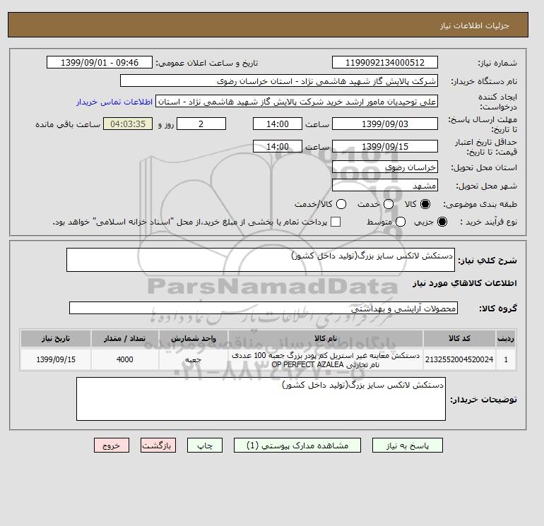 نام دستگاه خریدار:شرکت پالایش گاز شهید هاشمی نژاد - استان خراسان رضوی