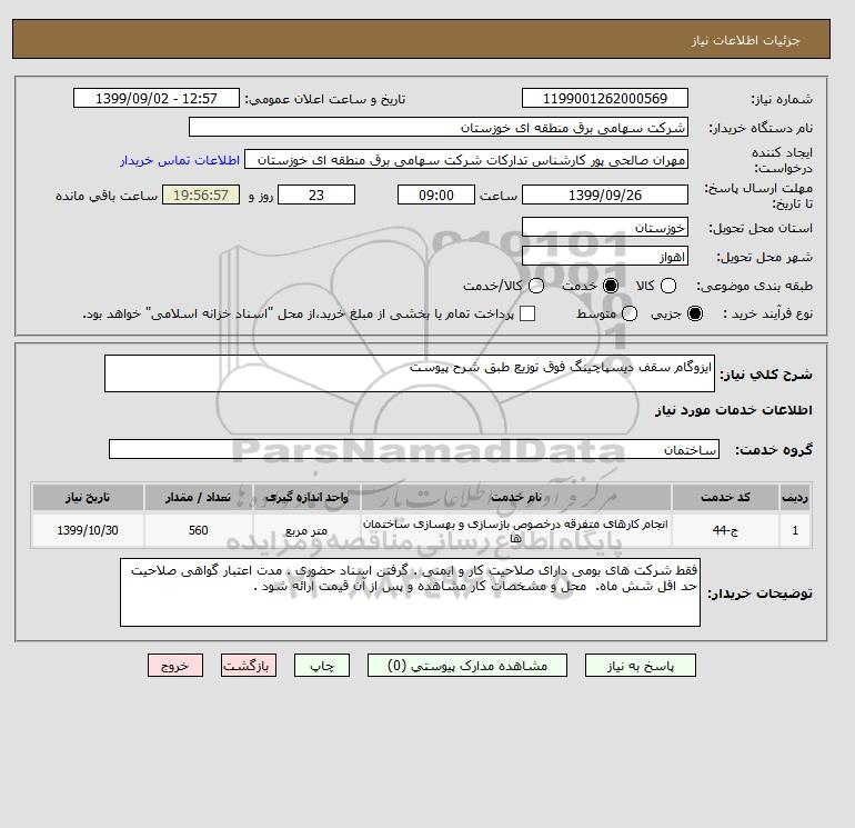 شرح کلی نیاز: ایزوگام سقف دیسپاچینگ فوق توزیع طبق شرح پیوست