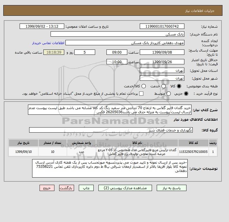 استعلام خرید گلدان فایبر گلاس به ارتفاع 70 سانتی متر سفید رنگ کد کالا مشابه می باشد طبق لیست پیوست عدم ارسال لیست پیوست به منزله حذف می باشد26205036 فکس, استعلام خرید گلدان فایبر گلاس به ارتفاع 70 سانتی متر سفید رنگ کد کالا مشابه می باشد طبق لیست پیوست عدم ارسال لیست پیوست به منزله حذف می باشد26205036 فکس