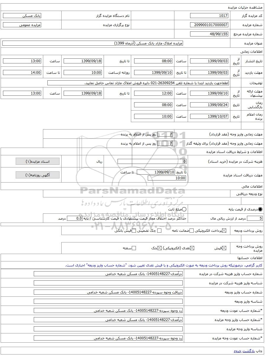 عنوان مزایدهمزایده املاک مازاد بانک مسکن (آذرماه 1399)