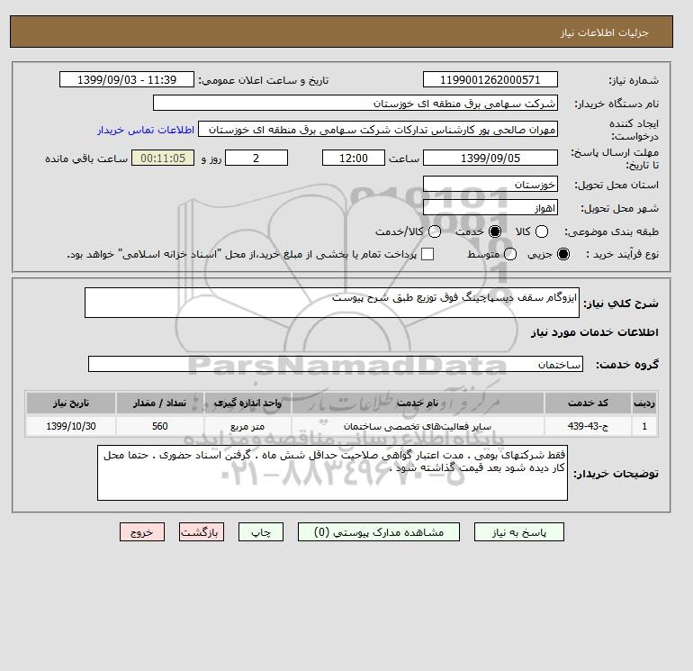 شرح کلی نیاز: ایزوگام سقف دیسپاچینگ فوق توزیع طبق شرح پیوست