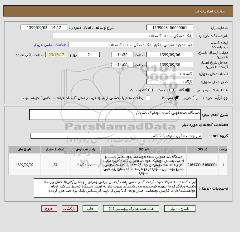 نام دستگاه خریدار:بانک مسکن استان گلستان