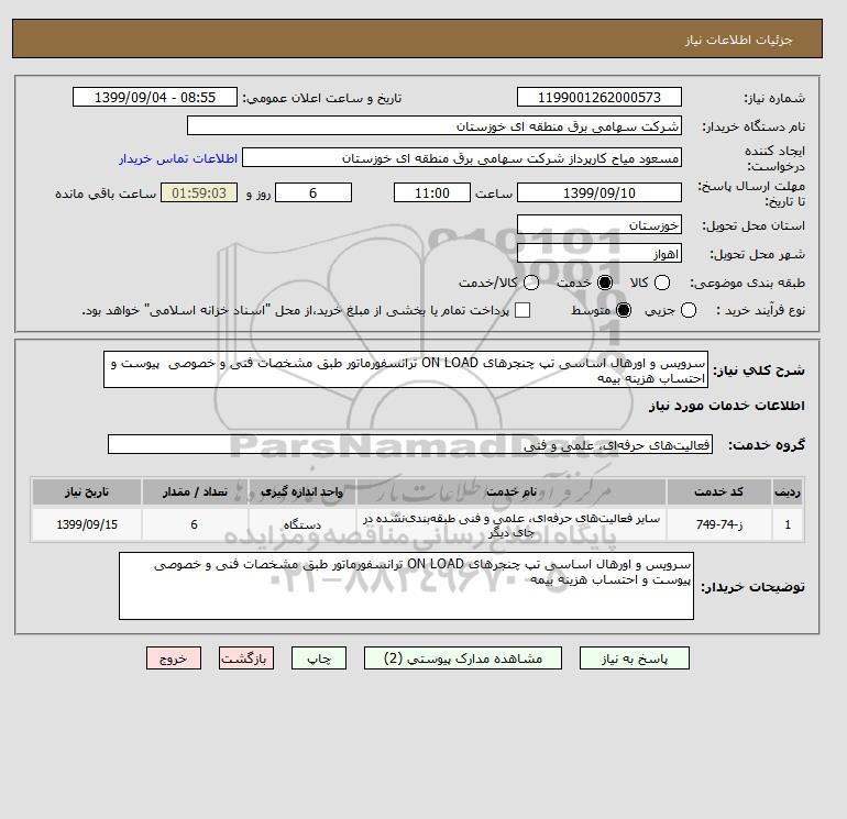 شرح کلی نیاز: سرویس و اورهال اساسی تپ چنجرهای ON LOAD ترانسفورماتور طبق مشخصات فنی و خصوصی پیوست و احتساب هزینه بیمه