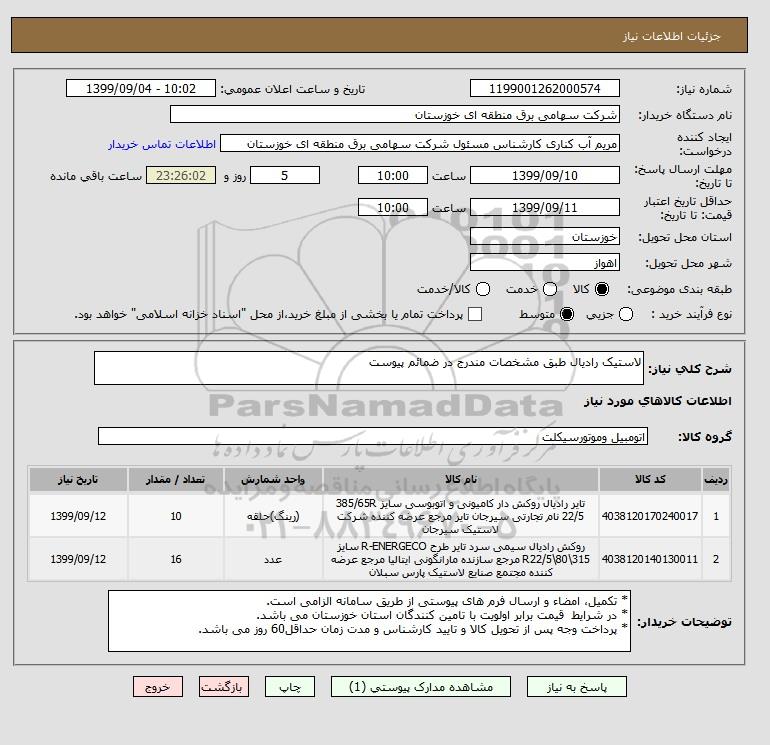 نام دستگاه خریدار:شرکت سهامی برق منطقه ای خوزستان