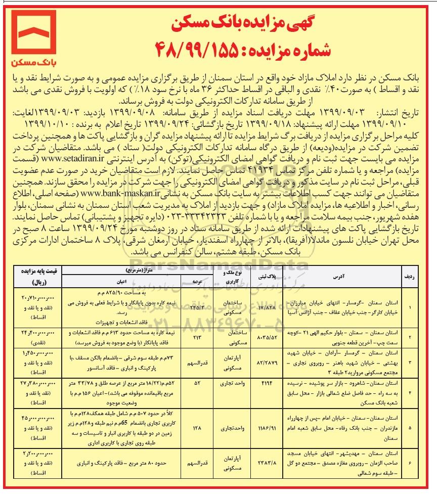 مزایده فروش املاک مازاد کاربری مسکونی و تجاری شماره 48.99.155