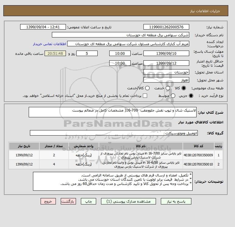 نام دستگاه خریدار:شرکت سهامی برق منطقه ای خوزستان