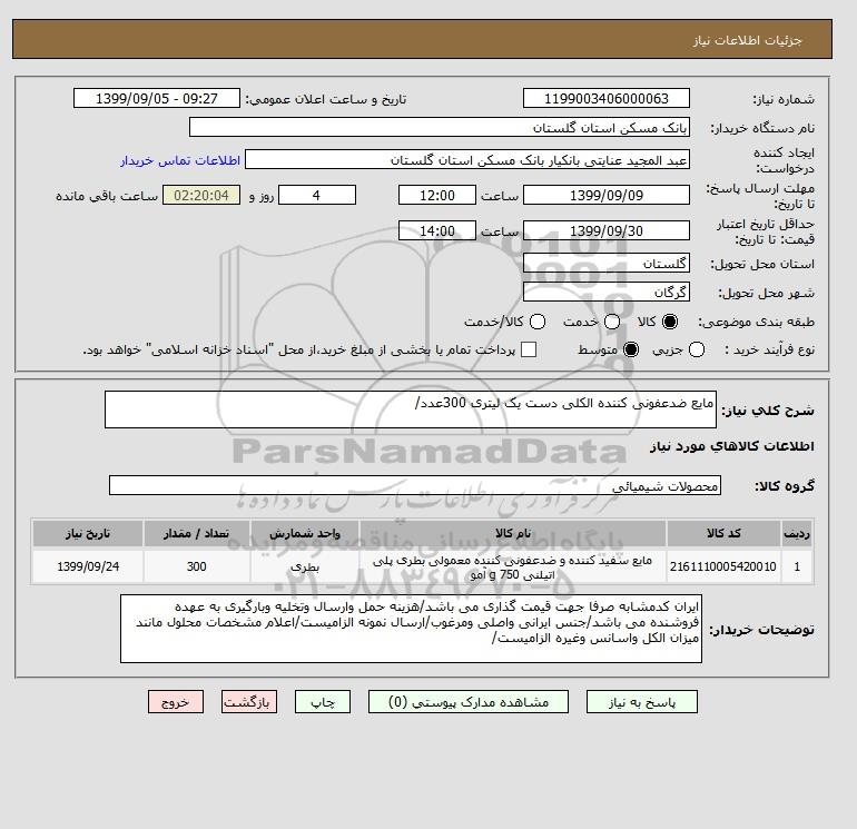 نام دستگاه خریدار:بانک مسکن استان گلستان
