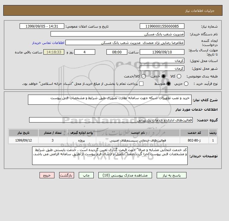شرح کلی نیاز: خرید و نصب تجهیزات شبکه جهت سامانه نظارت تصویری طبق شرایط و مشخصات فنی پیوست
