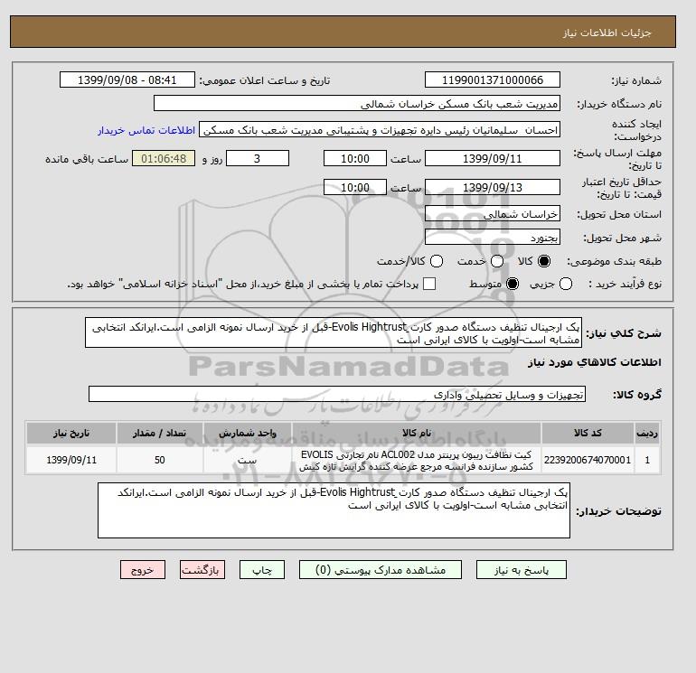 نام دستگاه خریدار:مدیریت شعب بانک مسکن خراسان شمالی