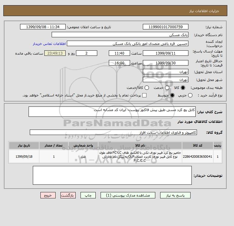 شرح کلی نیاز: کابل پچ کرد مسی طبق پیش فاکتور پیوست- ایران کد مشابه است