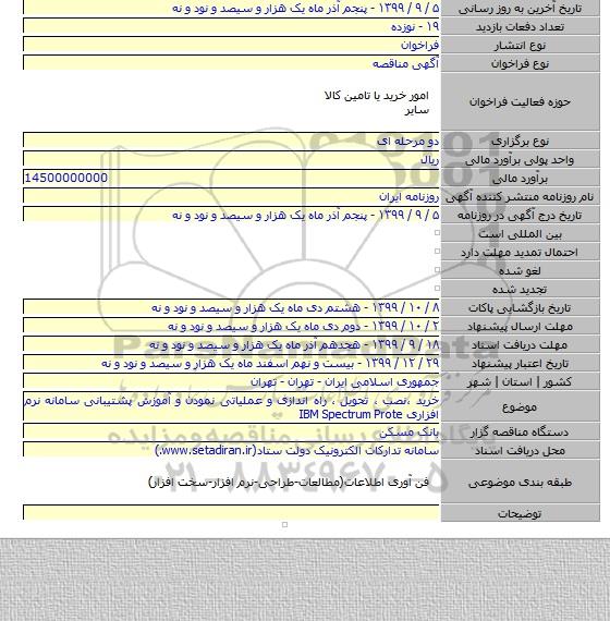 خرید ،نصب ، تحویل ، راه اندازی و عملیاتی نمودن و آموزش پشتیبانی سامانه نرم افزاری IBM Spectrum Prote
