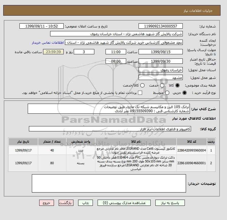 نام دستگاه خریدار:شرکت پالایش گاز شهید هاشمی نژاد - استان خراسان رضوی