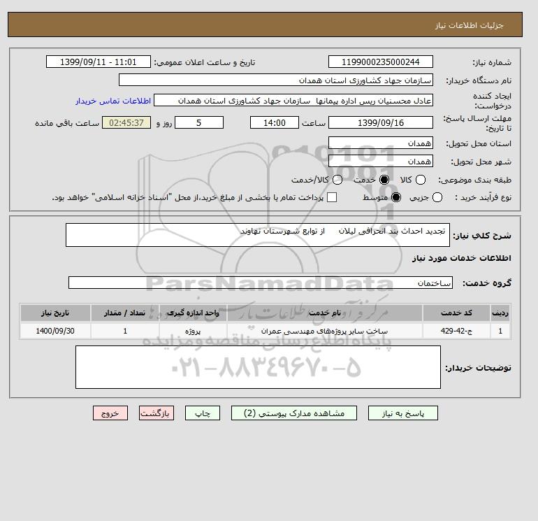 شرح کلی نیاز: تجدید احداث بند انحرافی لیلان از توابع شهرستان نهاوند