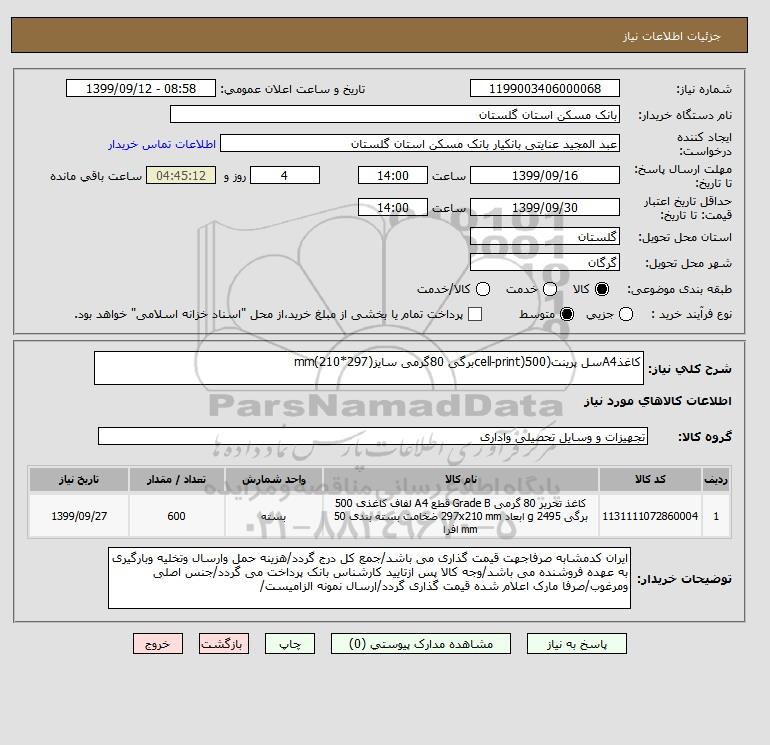 نام دستگاه خریدار:بانک مسکن استان گلستان