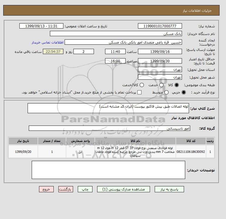 شرح کلی نیاز: لوله اتصالات طبق پیش فاکتور پیوست (ایران کد مشابه است)