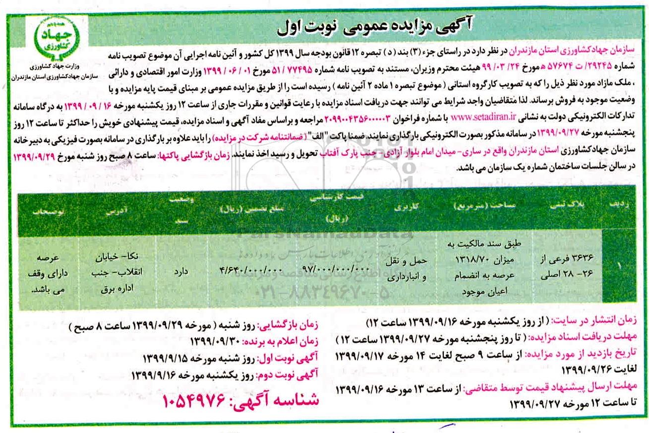 مزایده فروش ملک مازاد 3636 فرعی نوبت اول