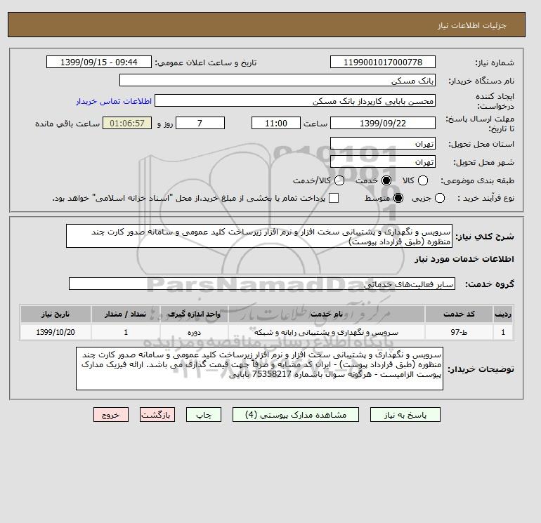 شرح کلی نیاز: سرویس و نگهداری و پشتیبانی سخت افزار و نرم افزار زیرساخت کلید عمومی و سامانه صدور کارت چند منظوره (طبق قرارداد پیوست)