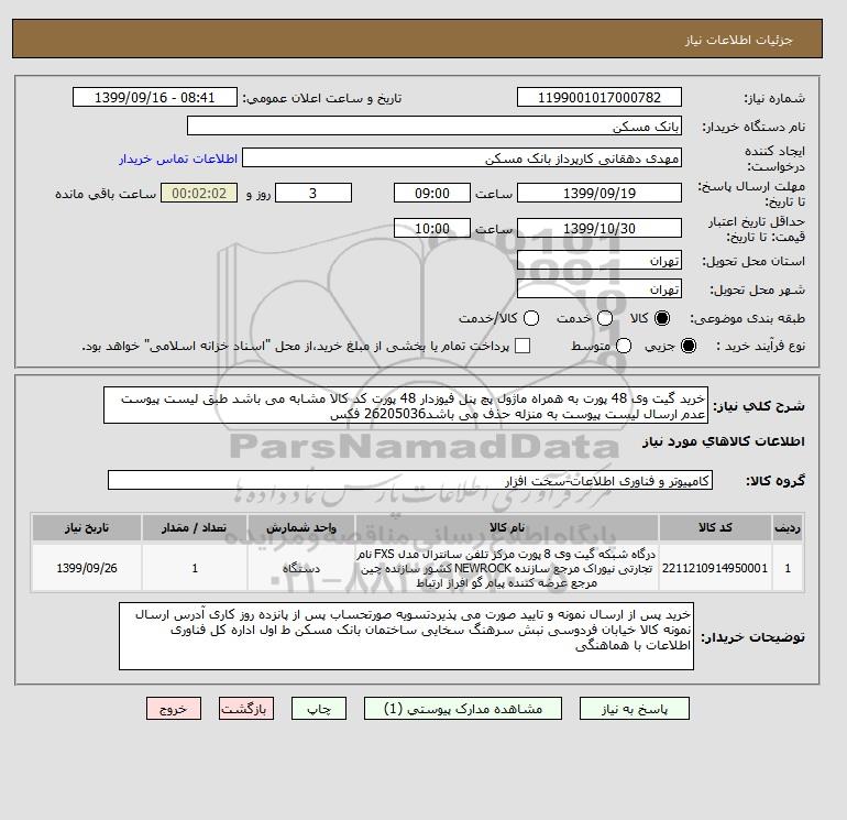 شرح کلی نیاز: خرید گیت وی 48 پورت به همراه ماژول پچ پنل فیوزدار 48 پورت کد کالا مشابه می باشد طبق لیست پیوست عدم ارسال لیست پیوست به منزله حذف می باشد26205036 فکس
