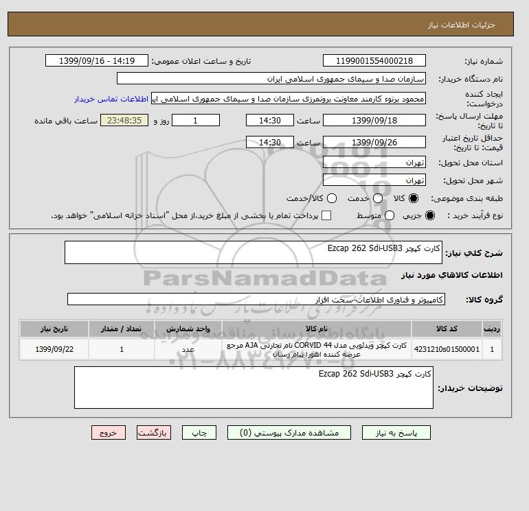 نام دستگاه خریدار:سازمان صدا و سیمای جمهوری اسلامی ایران